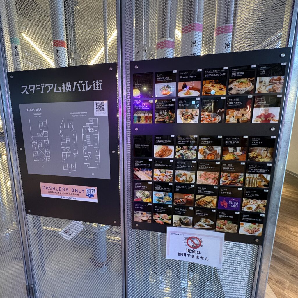 「スタジアム横バル街」という名前の通り、球場の熱気を感じながら、タイ料理から地元の味まで、ハシゴ酒が捗りそうな雰囲気です。