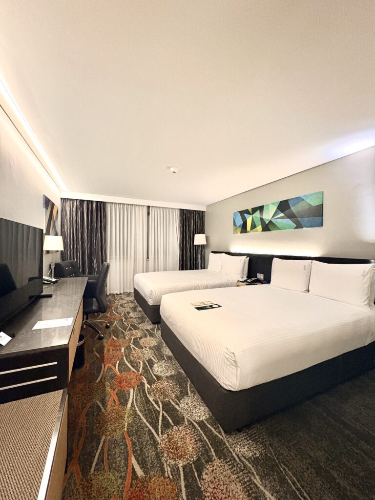 今回宿泊したのは、広々としたツインルーム。モダンで落ち着いたインテリアで、長旅の疲れを癒やすのにぴったりな空間です。