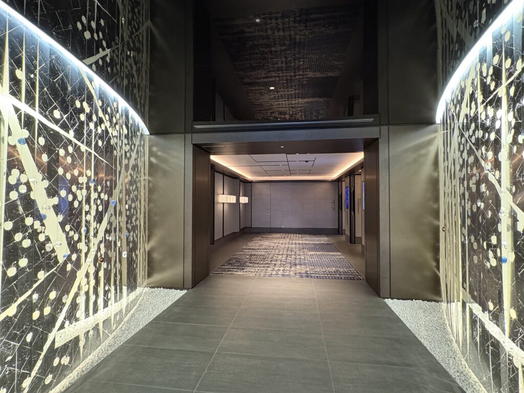 大理石を基調としたシックでモダンな内装に、期待が高まります。入り口にはワインセラーが並び、プロフェッショナルなスタッフが温かく迎えてくれました。