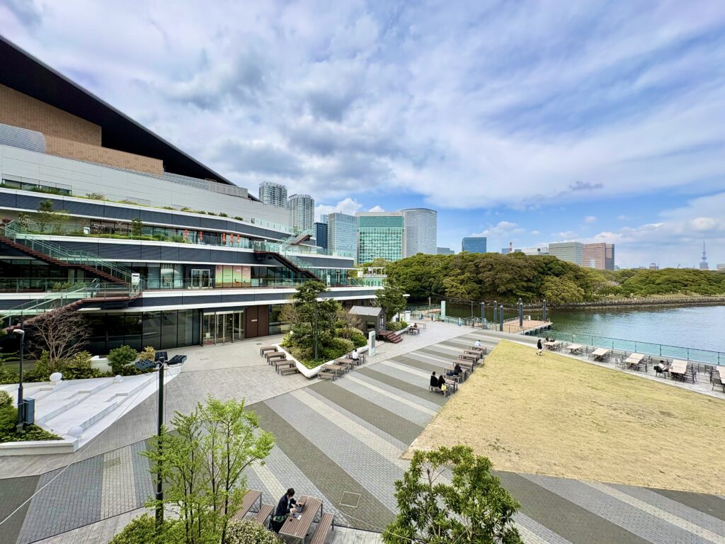 目の前には浜離宮恩賜庭園の緑が広がり、その先には汐留のビル群が見渡せます🏢