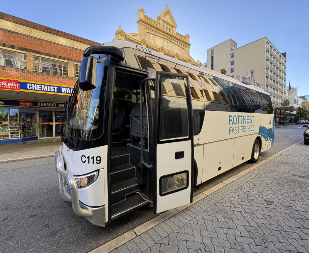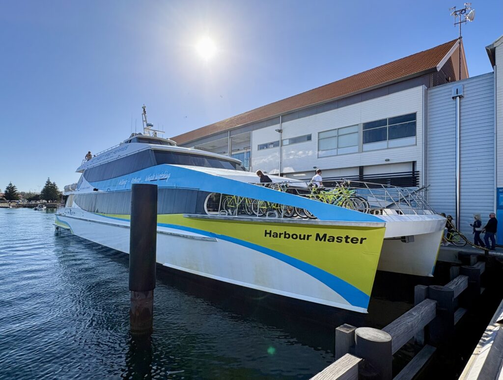 白い車体に「ROTTNEST FAST FERRIES」のロゴが目印です。