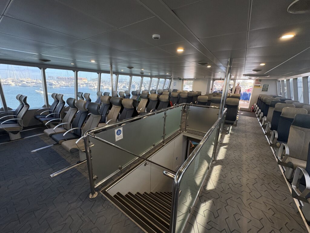 相棒とともに、10時発の高速船「Harbour Master」に乗り込み、約45分の船旅へ。