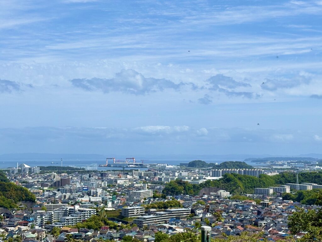 山の上に位置するため、園内の各所からは横浜の街並みと、その先に広がる東京湾を一望できます。